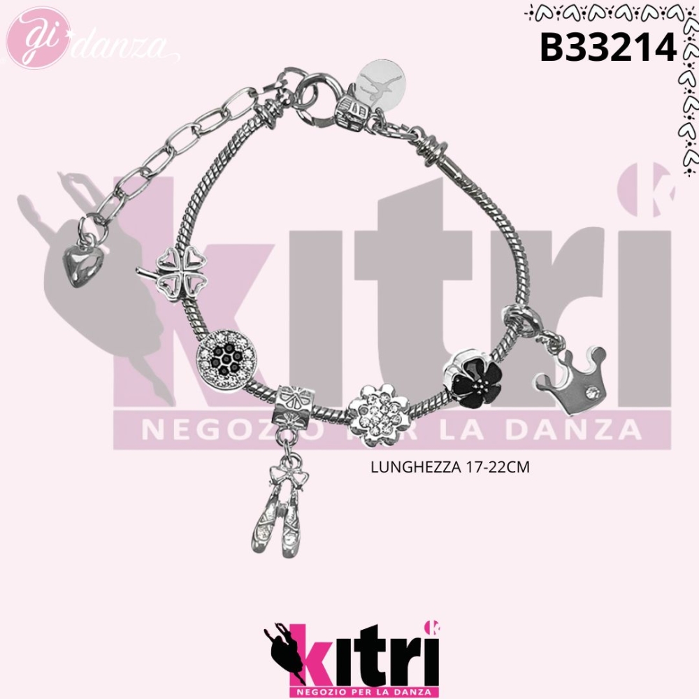 Bracciale in metallo con charms punte ballerina, diadema e strass