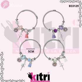 Bracciale in acciaio con 7 Charms , strass e ballerina smaltata.