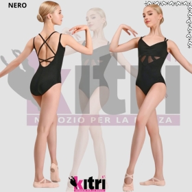 Body BELINDA con spalline della collezione Aplomb. Raffinatezza e comfort per le ballerine più esigenti! Il body BELINDA presenta un design raffinato con arricciatura sul davanti e inserti in rete semitrasparente che creano accenti visivi ed esaltano l'eleganza della figura. La schiena con spalline incrociate aggiunge un tocco di eleganza e rende questo body davvero unico. Realizzato in tessuto di nylon+spandex di alta qualità, questo body offre densità, elasticità e resistenza. Il tessuto non è trasparente e garantisce un supporto affidabile durante le prove e gli spettacoli. Una morbida fodera traforata color carne garantisce un comfort eccezionale, anche durante lunghe sessioni di allenamento.