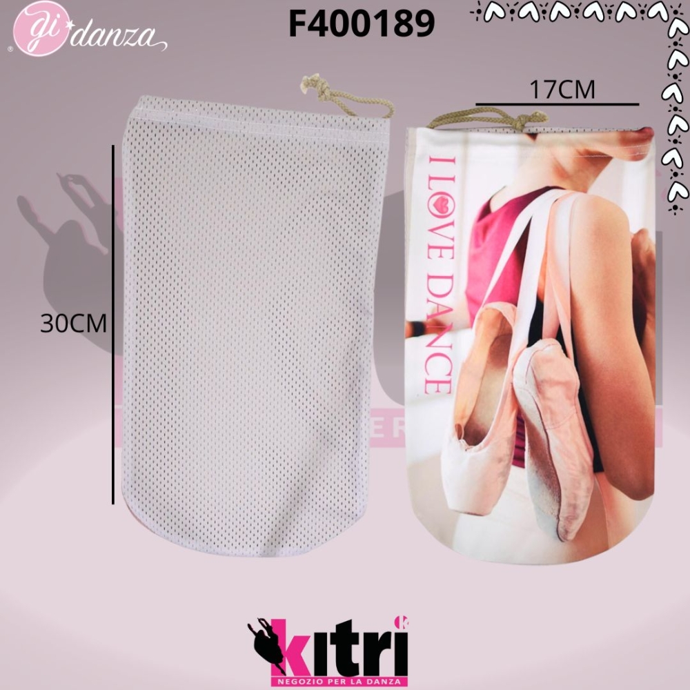 Portascarpe in tessuto leggermente elasticizzato con stampe esclusive Girardi dedicate alla danza.Il retro è in rete per una migliore traspirazione delle scarpe-